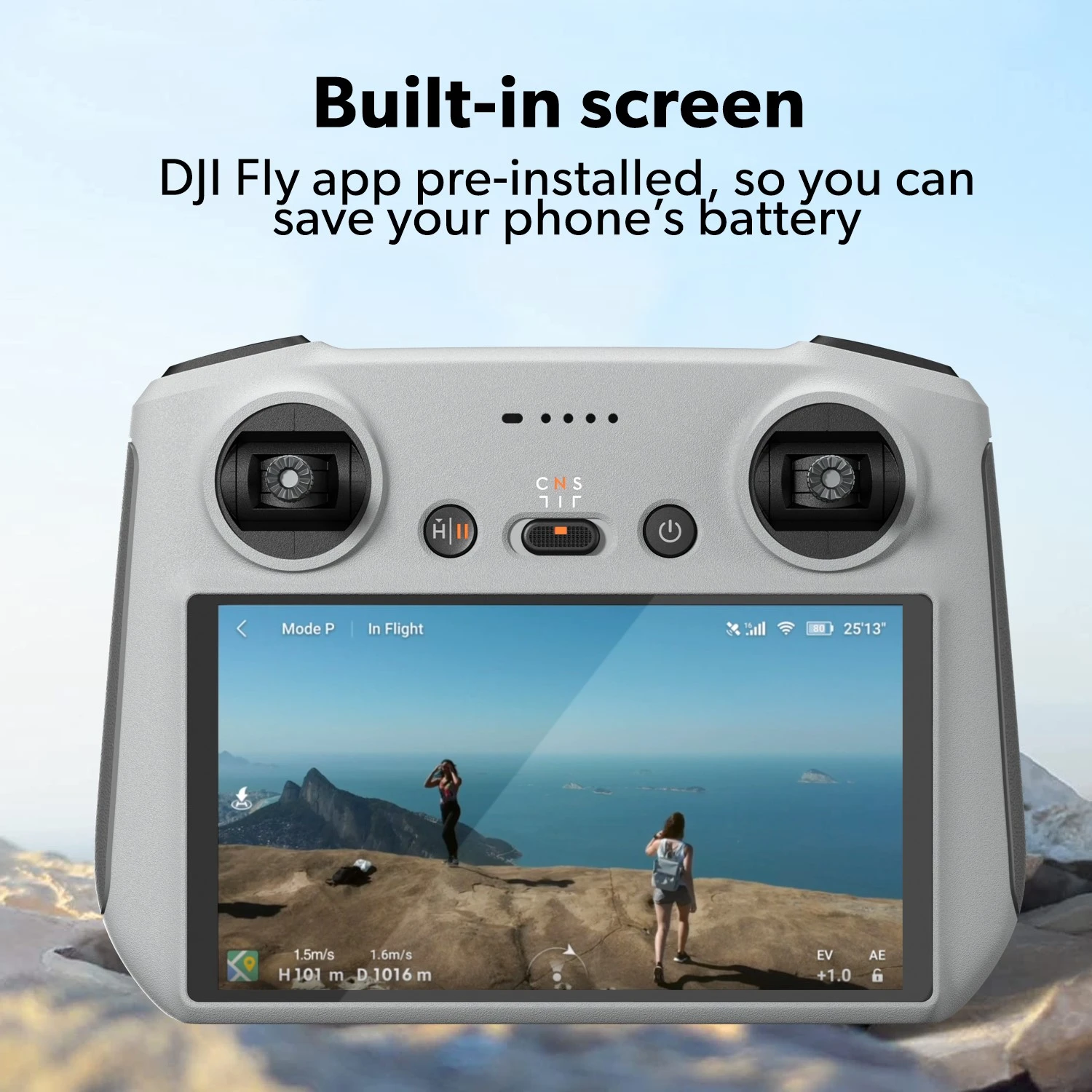Free up your phone with DJI RC. This lightweight remote controller features a built-in 5.5-inch HD screen designed explicitly for DJI Mini 3 Pro. With the DJI Fly app pre-installed, you can focus on flying and save your phone’s battery.