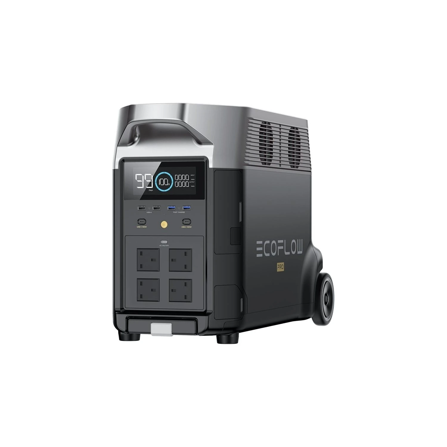 DELTA Pro is more than a portable power station. It can be expanded with Extra Batteries, Smart Generators and even the Smart Home Panel. Control it all via your phone with the EcoFlow app. - The world’s fastest charging portable power station